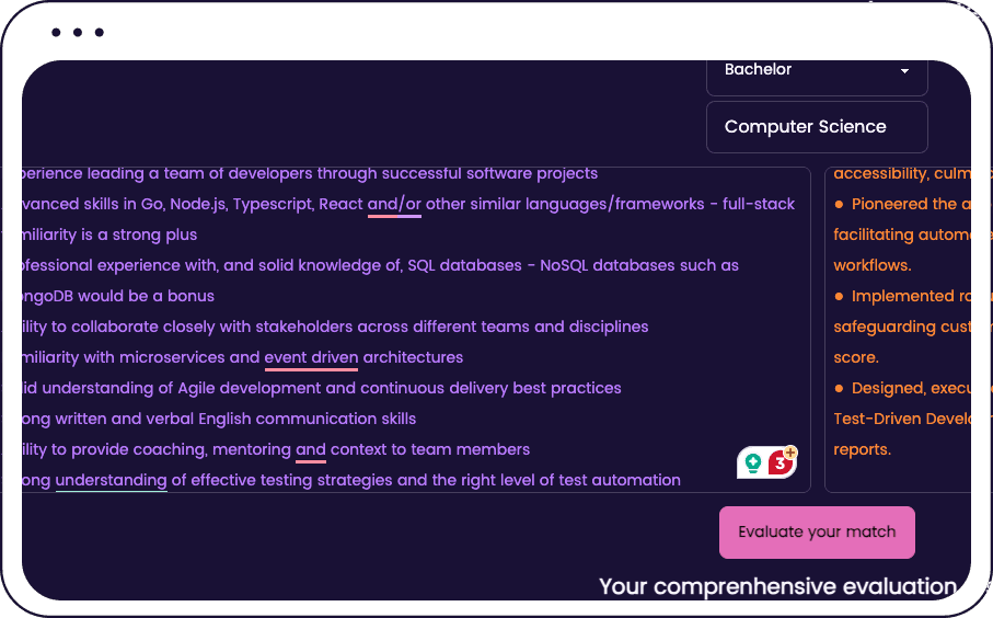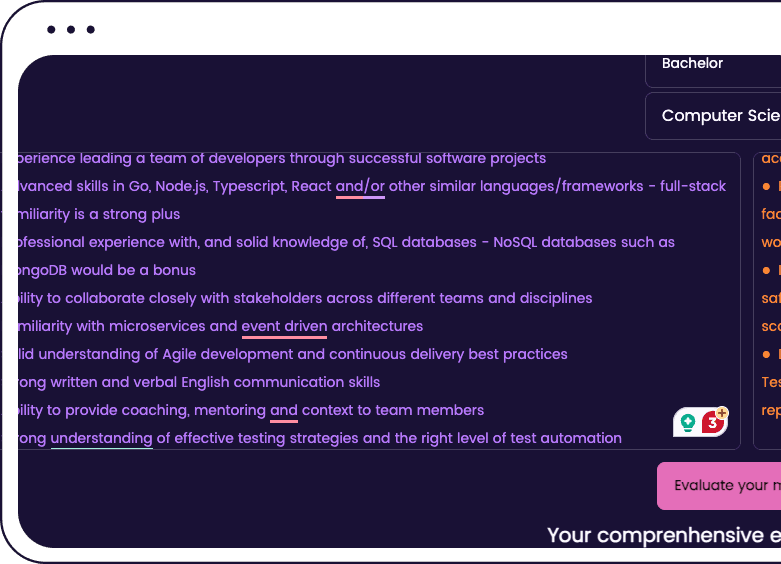 Provide our AI with a job description and we'll automatically create the perfect resume for you within just a few seconds.